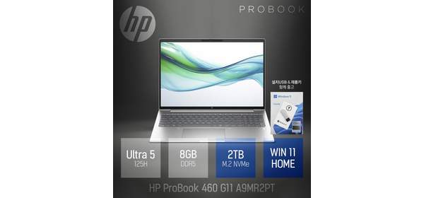 [25년 신제품으로 대체출고] HP 프로북 460 G11 A9MR2PT 16인치 AI 사무용 노트북, 실버, 2TB, 8GB, WIN11 Home