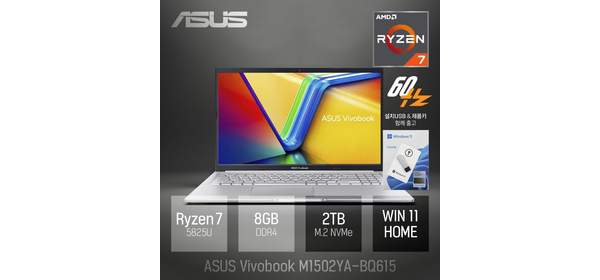ASUS 비보북 M1502YA-BQ615 / 15.6인치 라이젠7 쿨 실버 대학생 가성비 노트북 추천, 2TB, 8GB, WIN11 Home