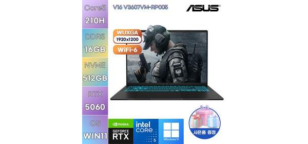 ASUS V16 V3607VM-RP005 Core5 RTX5060 WIN11 설치 고사양 게임용 노트북, WIN11 Pro, 16GB, 512GB