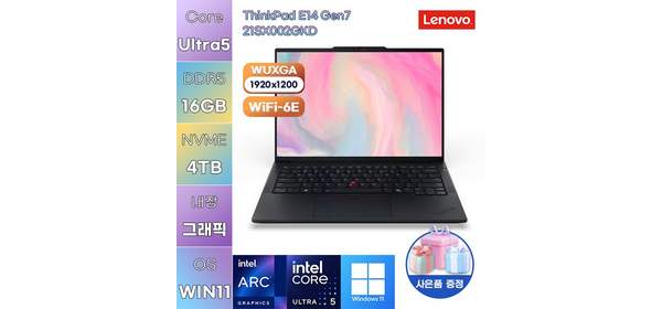 레노버 씽크패드 E14 Gen7 21SX002GKD Ultra5 Arc 130T WIN11 설치 가성비 사무용 대학생 노트북, WIN11 Home, 16GB, 4TB