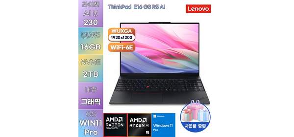 레노버 씽크패드 E16 G3 R5 AI 라이젠5 Radeon 760M WIN 11 PRO 가성비 사무용 대학생 노트북, WIN11 Pro, 16GB, 2TB