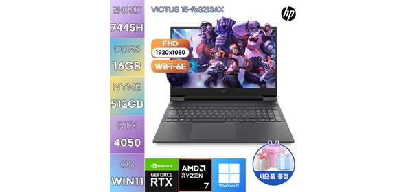 HP 빅터스 15-fb3213AX R7-7445H RTX4050 WIN 11 HOME 고사양 게임용 노트북, WIN11 Home, 16GB, 512GB