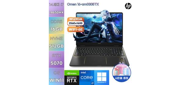 HP 오멘 16-am0305TX i7-14650HX RTX5070 WIN11 설치 고성능 게임용 작업용 노트북, WIN11 Pro, 16GB, 512GB