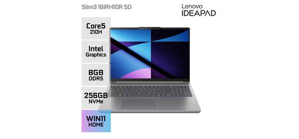 레노버 아이디어패드 Slim3 16 인텔 코어5 210H 500nit 165Hz 사무용 인강용 휴대용 노트북, Slim3 16IRH10R 5D, WIN11 Home, 8GB, 256GB, Luna grey