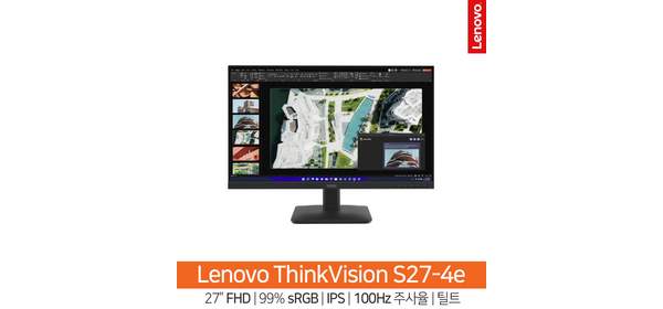 레노버ThinkVision S27-4e 27인치 모니터/FHD/IPS/주사율 100Hz/99% sRGB 색재현율/틸트/HH, 69cm