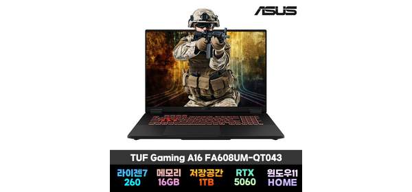 에이수스 TUF 게이밍 A16 라이젠7 지포스 RTX 5060, FA608UM-QT043, WIN11 Home, 16GB, 1TB, Jaeger Gray